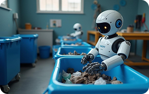 Create a robot that uses AI to sort recyclable and non-recyclable waste efficiently.