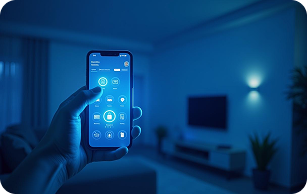 Design a system that uses IoT and AI to control lights, appliances, and security features remotely.